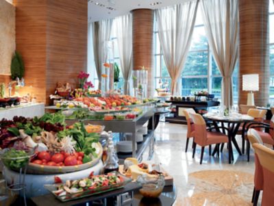 四季汇为客人奉上各种珍品海产和新鲜蔬菜的美味汇。明亮的有色玻璃和马赛克瓷砖营造出宽敞明亮的氛围,您可在此尽情享受美味佳肴。